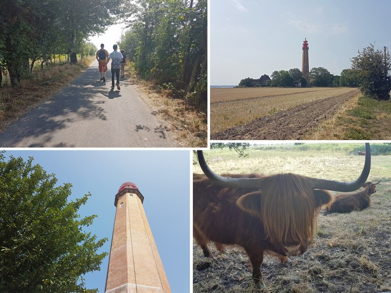 Dieses Mal haben wir uns den Leuchtturm Flügge vorgenommen und uns auf den Weg gemacht, ihn zu erklimmen. Er ist in einem Naturschutzgebiet gelegen nur zu Fuß erreichbar. Der Parkplatz ist ca. 1,5 km entfernt und so geht’s ein ganzes Stückchen auf Schusters Rappen des Weges.