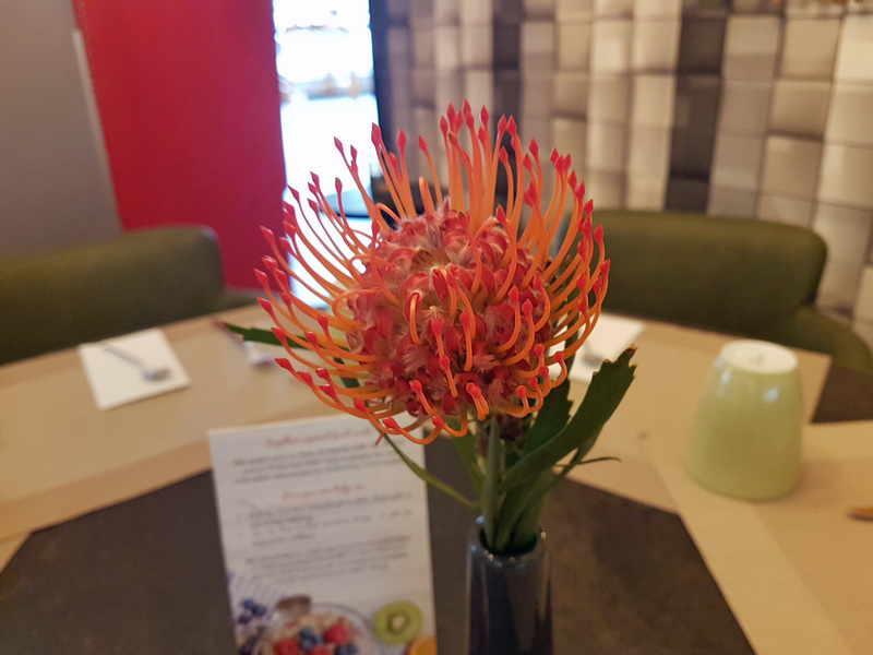 Das üppige Frühstücksbuffet ließ keine Wünsche offen. Wir haben alles gefunden, was unser Herz begehrt, wie z. B. Kaffee & Kaffeespezialitäten, Tee & Säfte, Brötchen, Croissants, Rührei, frische Omelettes, die in Form von Show-Cooking frisch für die Gäste zubereitet und nach Wunsch belegt werden, Lachs, kleine Frikadellen, Wurst, Käse sowie diverse Joghurt-, Quark- und Müslisorten, um nur eine kleine Auswahl zu nennen. Außerdem punktet das Hotel mit vielen kleinen kostenlosen Extras. Hierzu zählt neben dem Service, im Foyer Kaffee, Wasser und kleine Häppchen zu genießen auch noch das bereitgestellte Wasser auf dem Zimmer und die Möglichkeit, sich dort selbst Kaffee oder Tee zuzubereiten.